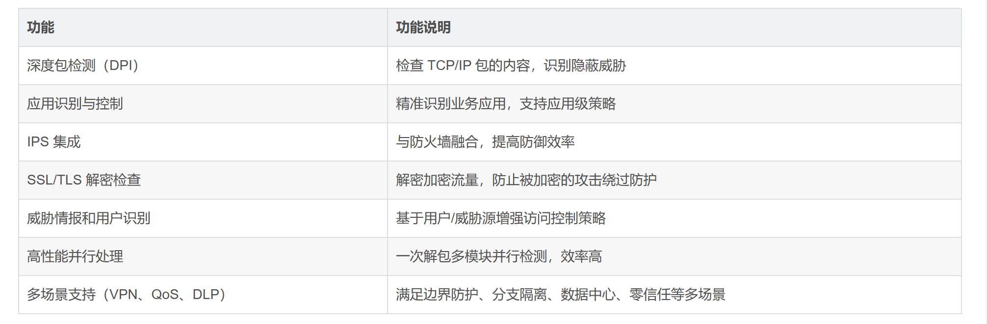 NGFW 则具备统一引擎,一次解包并行检测,性能更优。