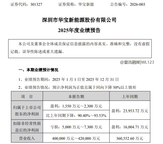 图源:华宝新能2025年度业绩预告